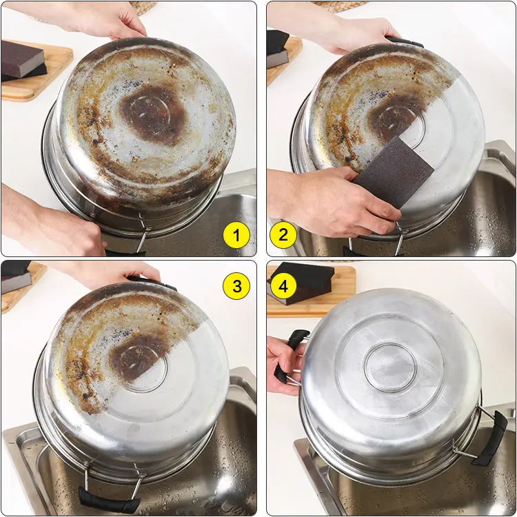鐵制、鋼制產品缺點是放置時間長了就容易生銹,沾水后長期未使用容易生銹,從鍋具、菜刀到一些兒童玩具,如果鐵銹不除,這些海綿紙的鐵銹會吸收水分,鐵也就銹蝕得更快。鐵銹通常牢固的附著在物體的表面,簡單的用水沖或是用普通的洗碗海綿去擦拭根本沒什么效果,不僅把海綿擦壞了,銹漬也沒有擦掉。如果用鋼絲球這種既堅硬,摩擦力又大的清潔工具,即便可以將鐵銹去除,也會對物體表層造成損害。所以我們需要一種既柔軟又具有摩擦力的潔具,可以在快速除銹的同時不損傷物體,金剛砂海綿就是一個好的選擇。